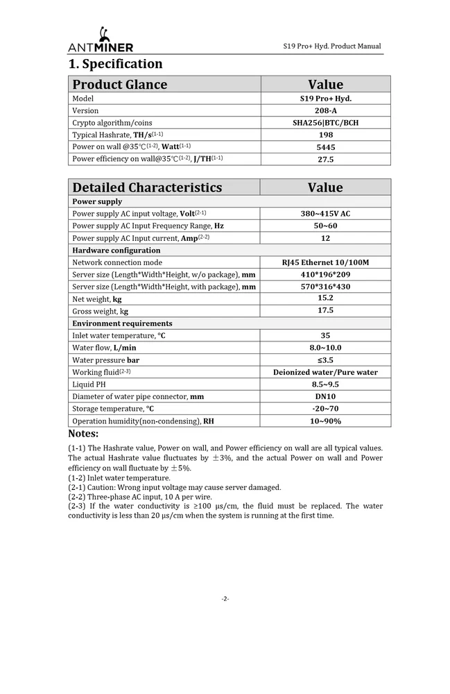 | Model | Antminer S19 Pro+ Hyd (198Th) |