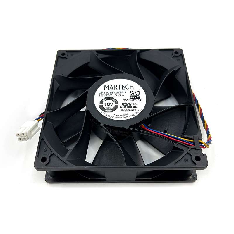 Martech DF1403812B2FN 12VDC 5A 140mm x 140mm x 38mm cooling fan is used to replace the damaged case fan of Antminer S21XP, S21pro, S21+. When the fan is under high load for a long time, it may cause untimely heat dissipation and substandard fan speed. Timely replacement of the faulty fan can help miners dissipate heat normally. The fan adopts maintenance-free double ball bearings, with sufficient and stable air volume, and is strong and durable.